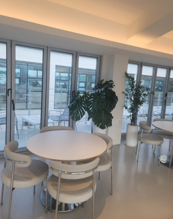 - 바다뷰가 한눈에! 탁 트인 창 너머로 바다를 바라보며 여유로운 커피타임 가능 🌊