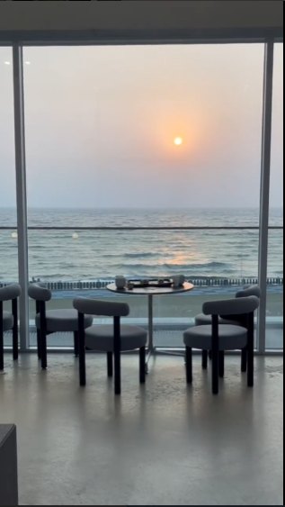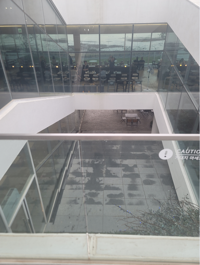 지하 1층 통창형 좌석 → 햇빛과 바다 조망 가능 1층 음료 주문/베이커리 진열 공간, 중앙 정원 조성 2층 통유리 좌석에서 파노라마 오션뷰 감상 옥상 루프탑 정원과 오픈형 테이블, 야외 좌석 다수 존재 - 야외공간: 잔디밭, 테라스, 모래사장 바로 연결되어 있으며 아이 동반 가족에게 적합한 환경 제공