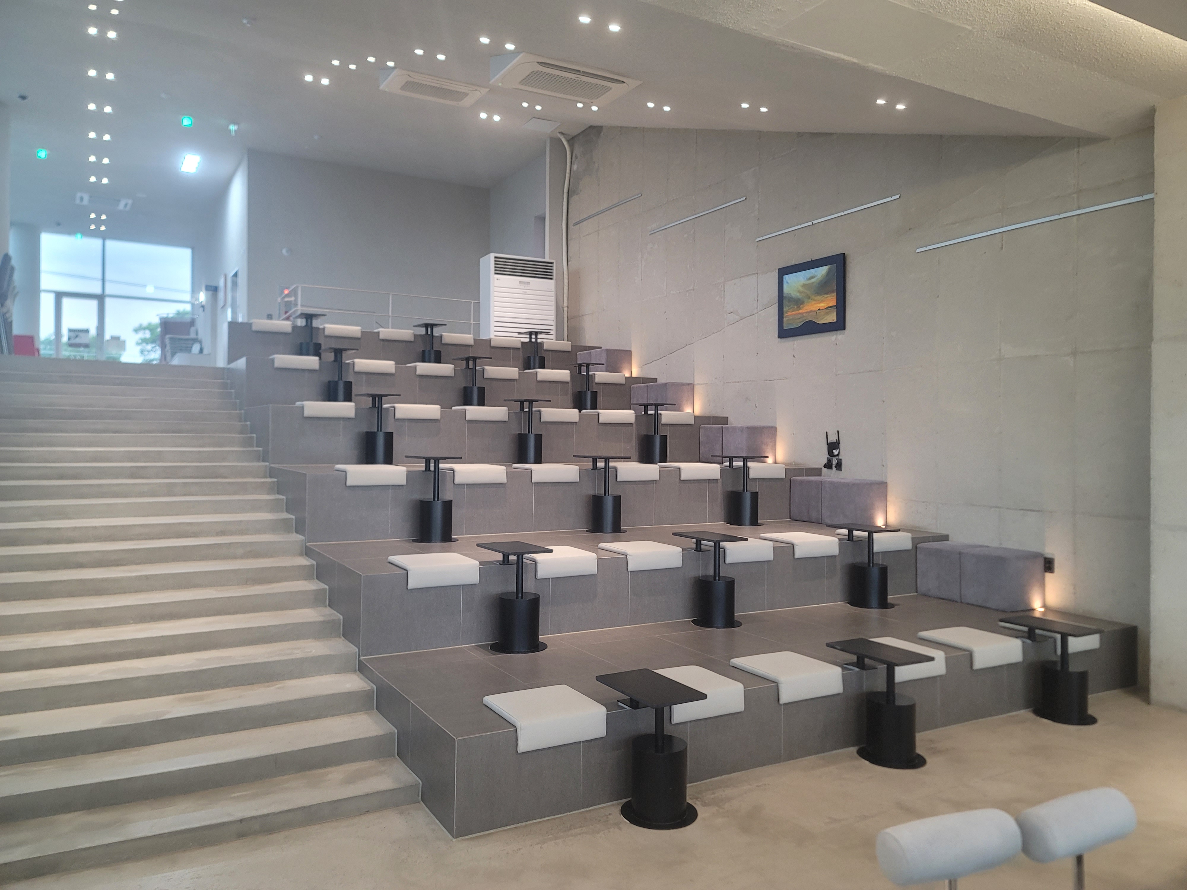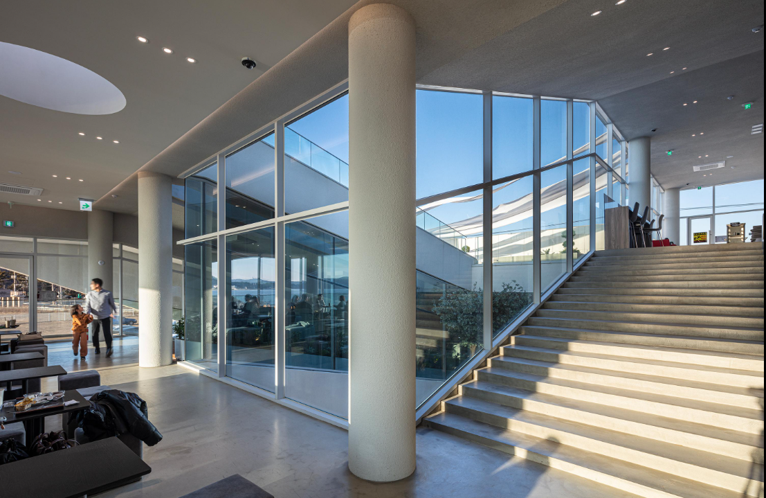 - 건축 디자인 : 한글 자모 ‘ㅁ’을 형상화한 독특한 건축 구조로, 오션뷰 감상을 위한 통유리와 계단형 좌석이 특징입니다.