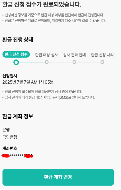 | 5️⃣ | 결과 및 환급 | 문자 안내 → 계좌입금 |