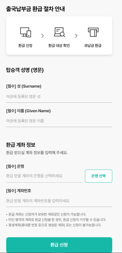 - 환급 신청 페이지 캡처 – 여권/항공권 입력 화면