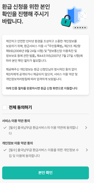 - 본인 인증 및 환급 신청 가능