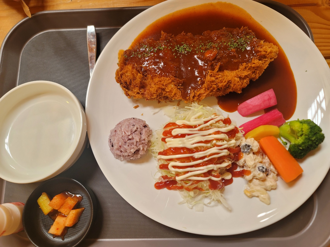 두툼한 스테이크 스타일 돈까스, 반찬+루이보스 티 제공