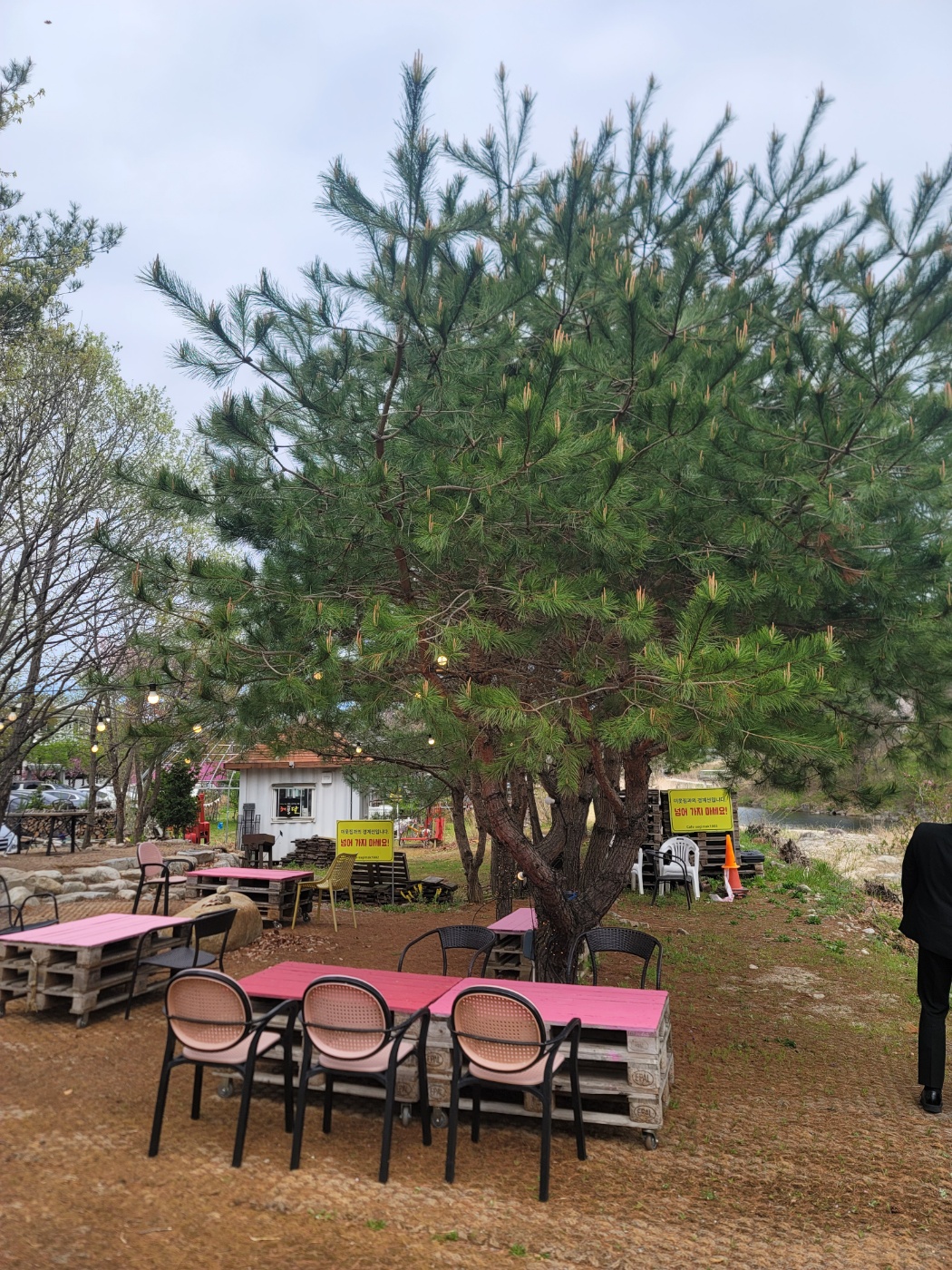 야외 테라스에서는 시냇물 소리를 들으며 커피를 마실 수 있습니다