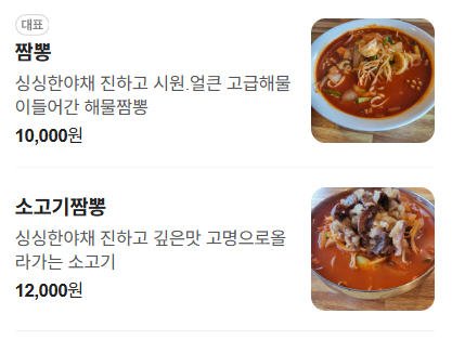 현재는 짬뽕(밥), 짬뽕, 소고기짬뽕, 짜장면, 미니탕수육, 등심탕수육, 군만두, 소주/맥주 이렇게만 판매하고 있어요.