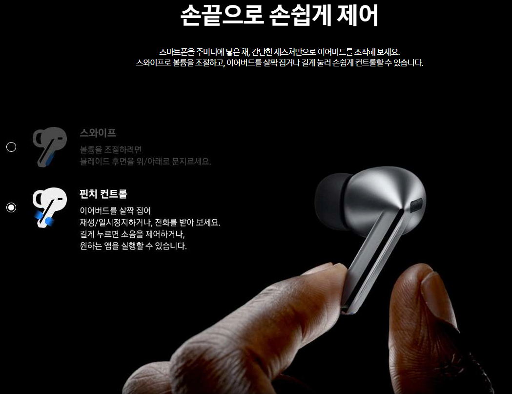 | 갤럭시 버즈3 프로 | 듀얼 앰프 탑재로 풍부하고 선명한 사운드 제공 |
