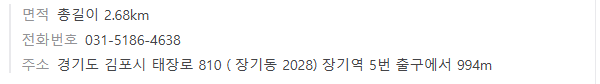 | 장기5 공영주차장 | 김포한강2로23번길 76 (도보 3분) |