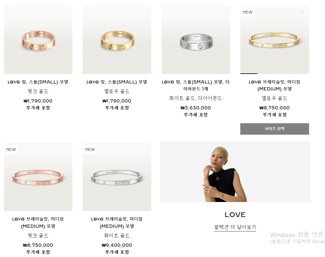 까르띠에 주요 제품 가격 변동 (2024년 기준)