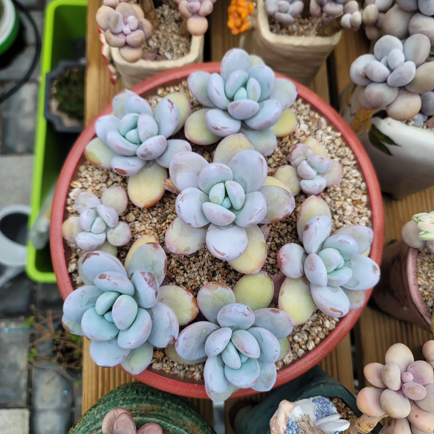 다양한 색상의 꽃을 피우는 다육식물로, 실내에서 키우기 좋습니다. 꽃이 피는 기간이 길어 관상용으로 인기가 많습니다.