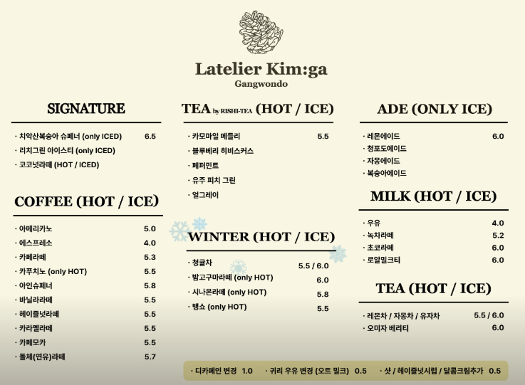 | 치약산복숭아 슈페너 | 6,500원 | 계절별 특별한 재료로 만든 음료 |