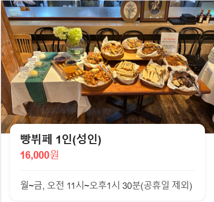 (빵뷔페)평일 11시~13시30분까지(공휴일,주말제외) - 16000원