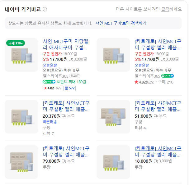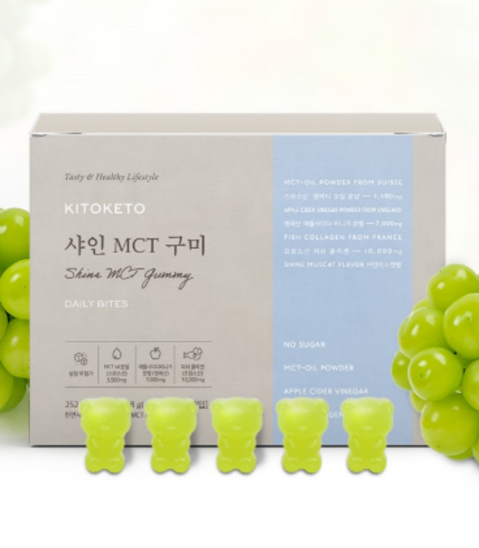 - A: 샤인 MCT 구미는 MCT 오일과 콜라겐을 함유하여 영양적인 면에서 우수하며, 샤인머스캣 맛으로 맛과 향이 뛰어납니다.