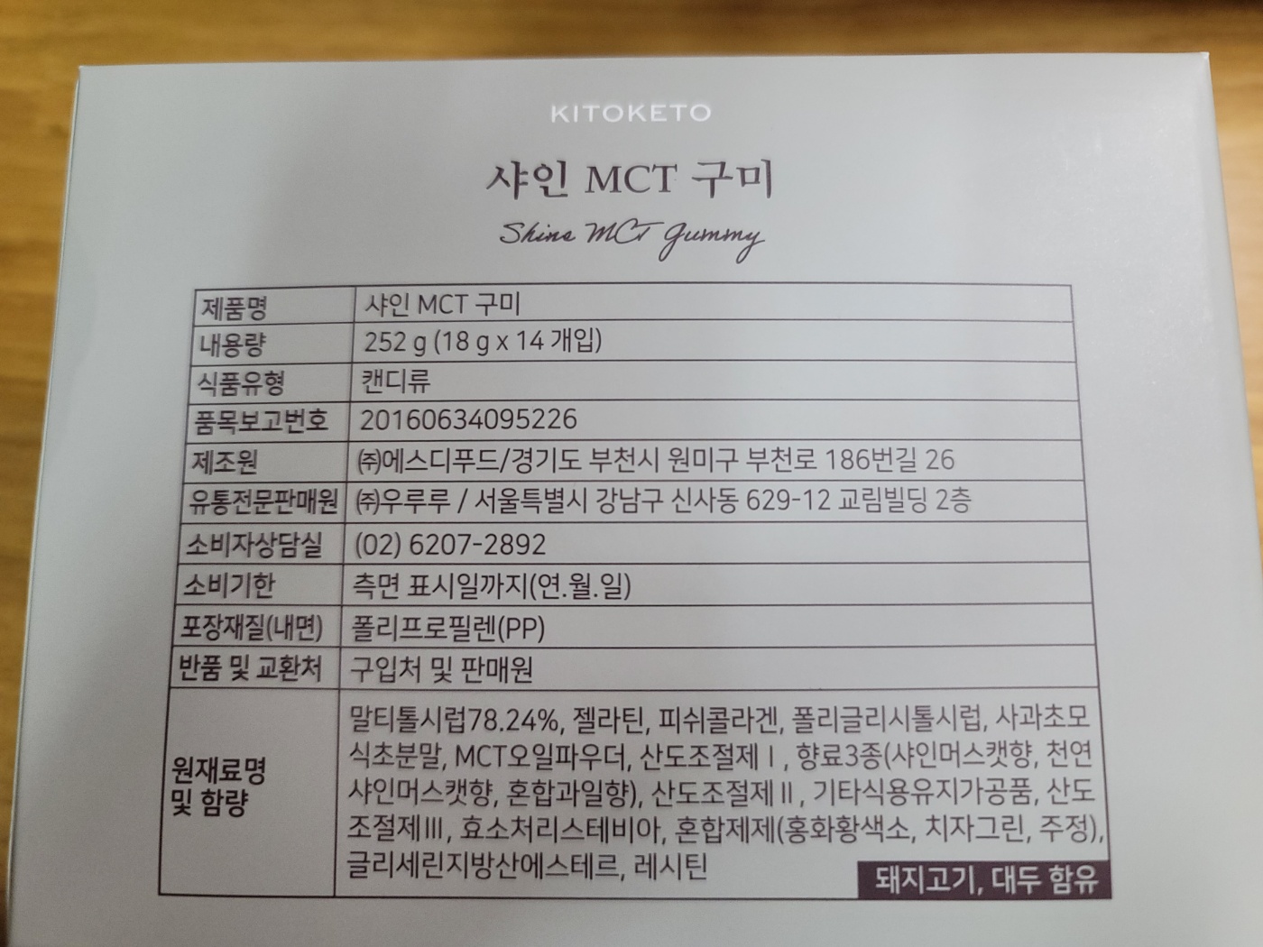 샤인 MCT 구미의 주요 성분은 다음과 같습니다: