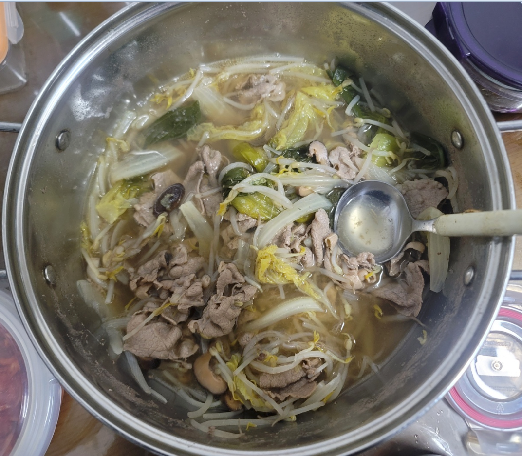 - 소고기와 채소 넣기: 육수가 끓으면 소고기와 채소를 넣습니다. 소고기는 2~3초 정도만 담갔다가 꺼내 먹으면 되며, 채소는 조금 더 오래 익혀서 먹습니다.