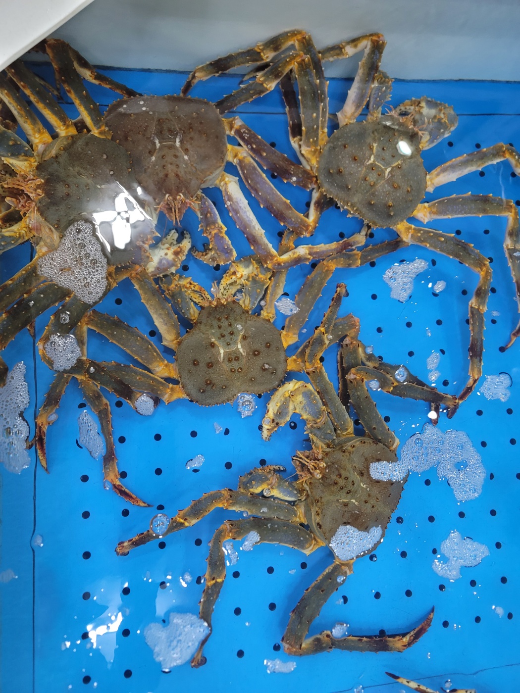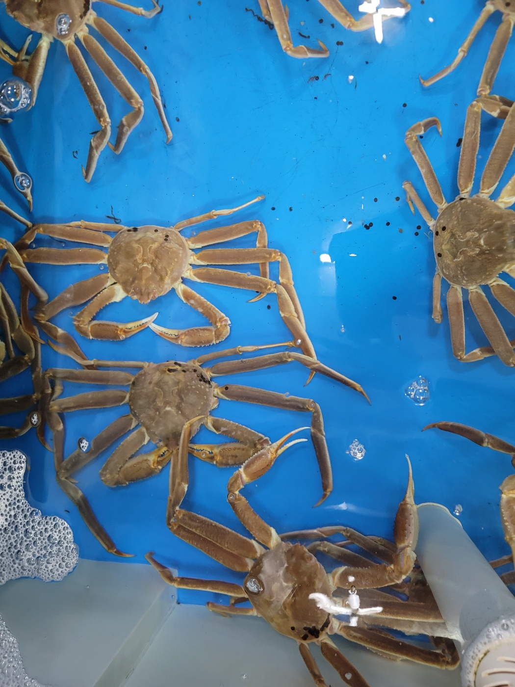 - 신선한 대게 진열: 직접 잡은 대게가 수조에 진열되어 있는 모습