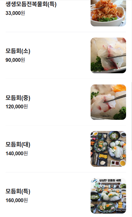 또한 그 외에도 횟감 및 다른 메뉴가 있습니다.