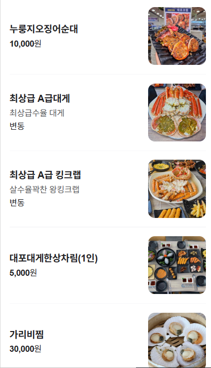 | 구분 | 대포대게회직판장 | 일반 식당 |