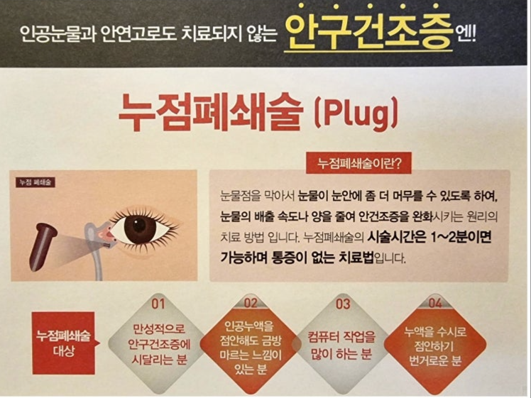 눈물 배출로를 막는 *눈물점 폐쇄술* 이나 *강한 펄스 빛(IPL) 치료법* 과 같은 절차는 장기적인 완화를 제공할 수 있습니다. 자신의 상태에 가장 적합한 방법을 찾기 위해 안과 전문의와 상담하세요.