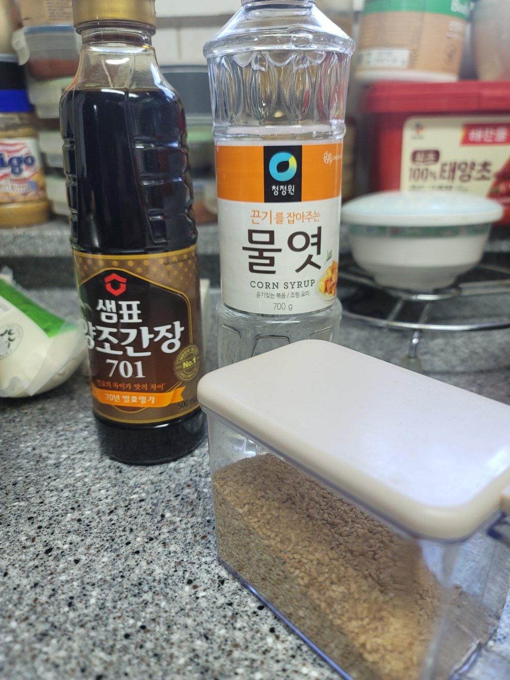 - 양념: 간장, 설탕, 올리고당, 다진 마늘, 참기름