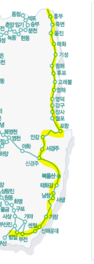 - 창가 좌석을 예약하면 동해안 풍경을 감상할 수 있습니다.