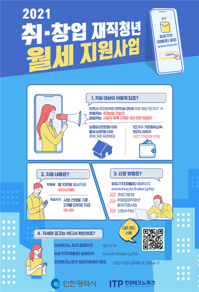 신혼부부뿐 아니라 청년 1인 가구에게도 인천시는 대출 이자 지원과 월세 지원 혜택을 제공합니다.