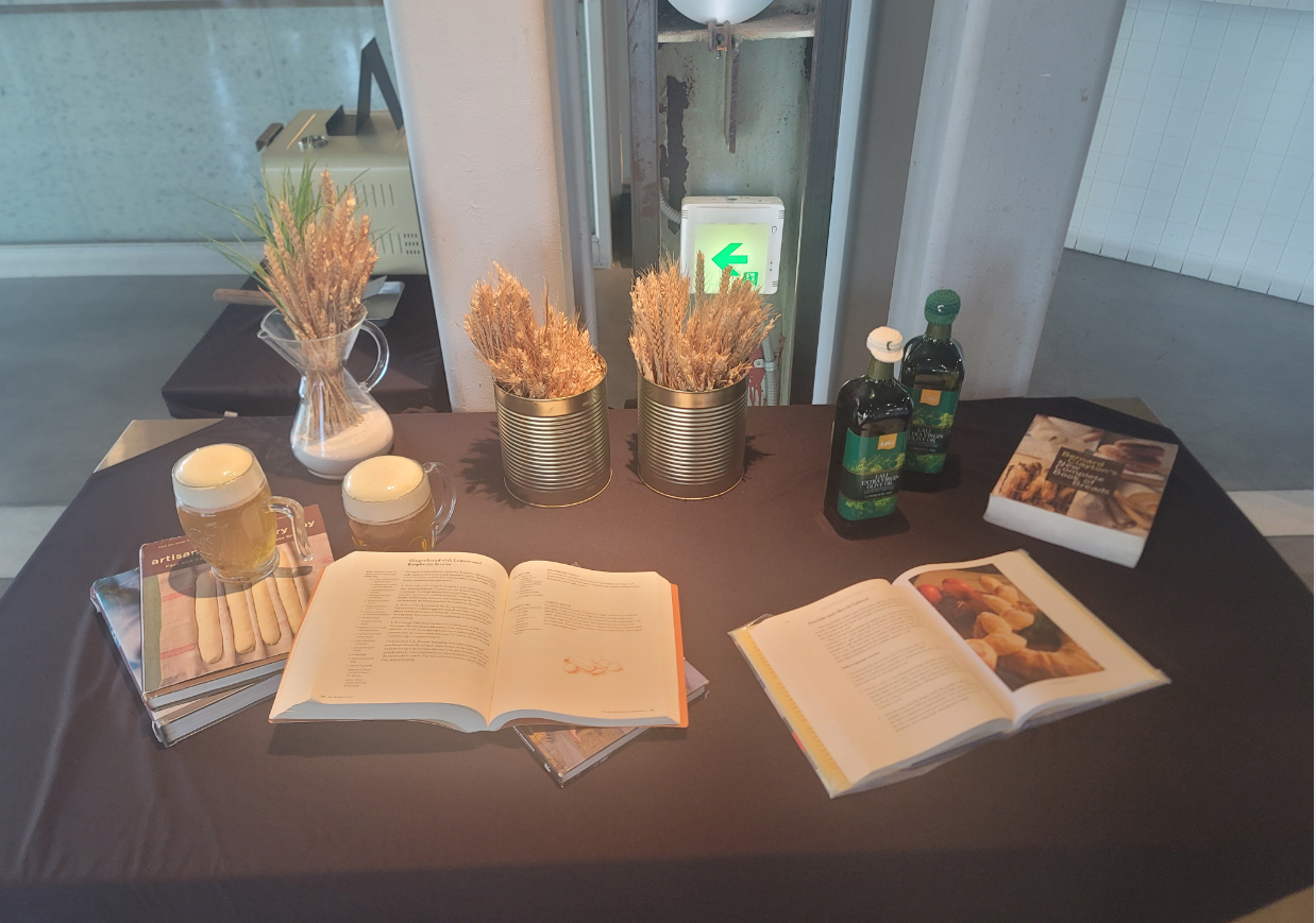 - 베이커리 쇼케이스: 갓 구운 페이스트리와 브라우니가 진열된 디스플레이.