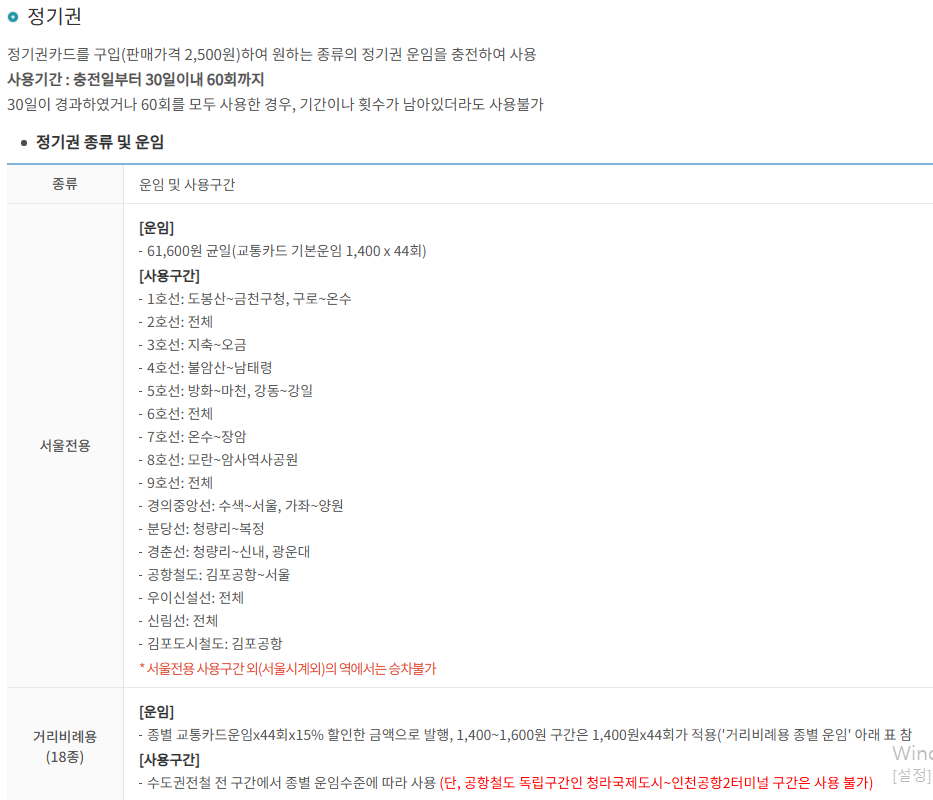 지하철을 자주 이용하시는 분들은 정기권을 통해 교통비를 절약할 수 있습니다. 정기권은 30일 동안 60회를 이용할 수 있으며, 일반 요금보다 약 20~30% 저렴합니다.