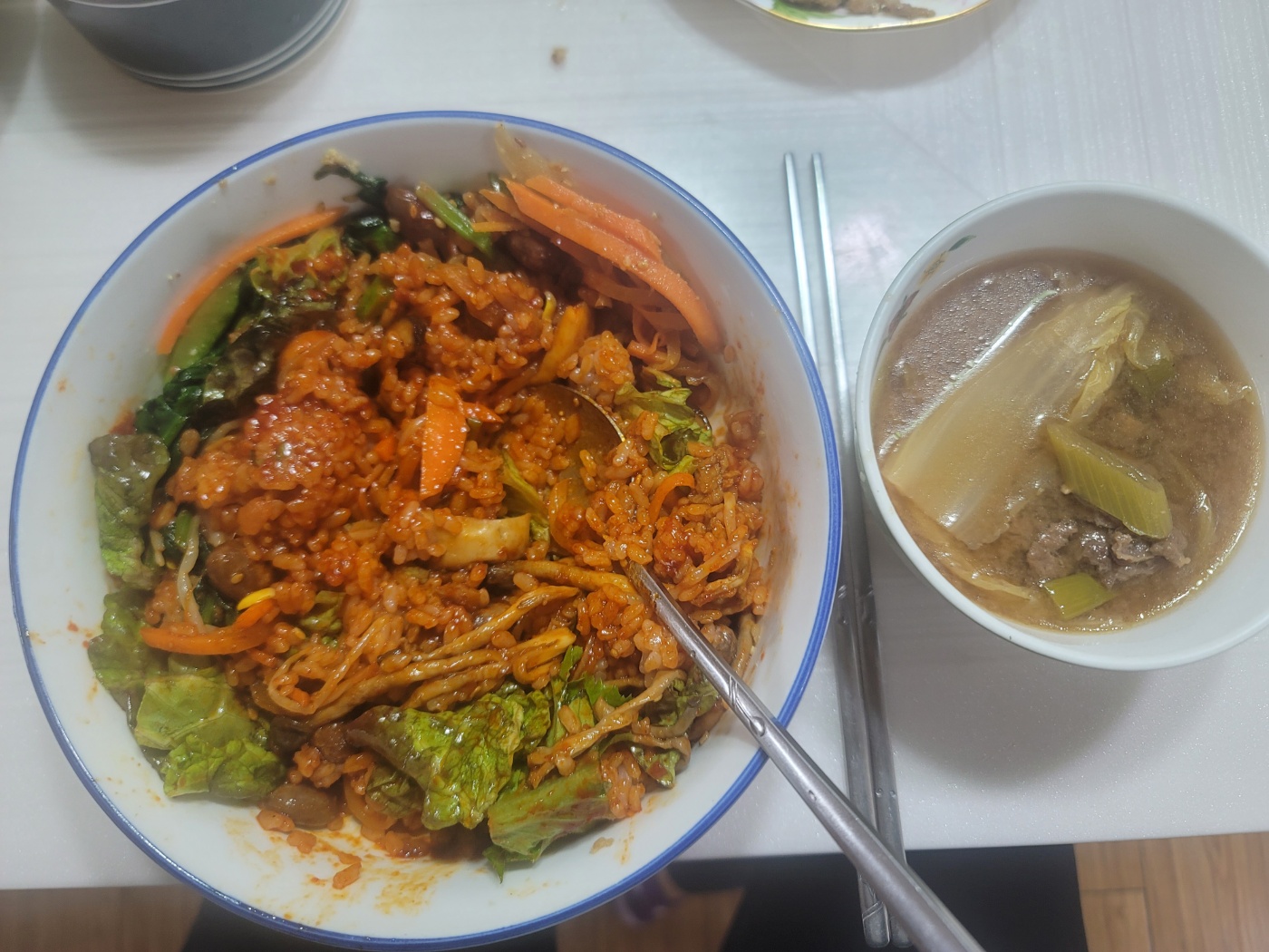 집에 남은 김치, 반찬들을 활용해 비빔밥을 만들어보세요. 다양한 맛이 어우러져 더욱 풍성한 비빔밥을 즐길 수 있습니다.