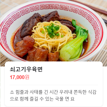 저희는 쇠고기우육면, 뀌바로우, 마늘종 자장면 를 시켜 먹었어요.