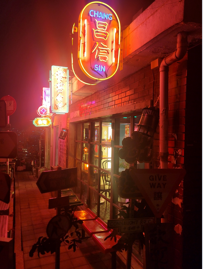 조명이 화려하면서도 홍콩영화에서 볼법한 전단지가 붙어 있네요 ㅎㅎ