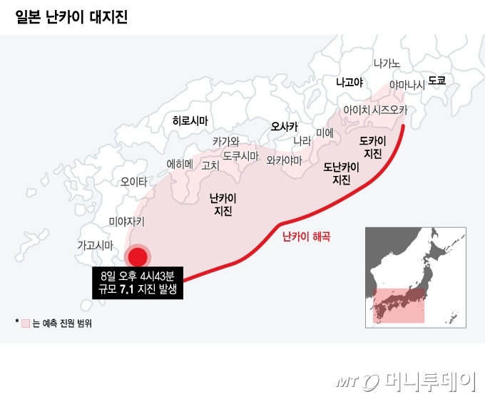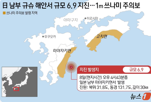 실제로 2024년 8월, 일본기상청(JMA)은 M7.1 규모의 지진이 日向灘 에서 발생한 직후, “난카이 대지진 가능성 경고” 를 발표했습니다