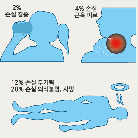 | 구역질 · 구토 | 위장 혈류 저하 + 탈수로 인한 이상 반응 |