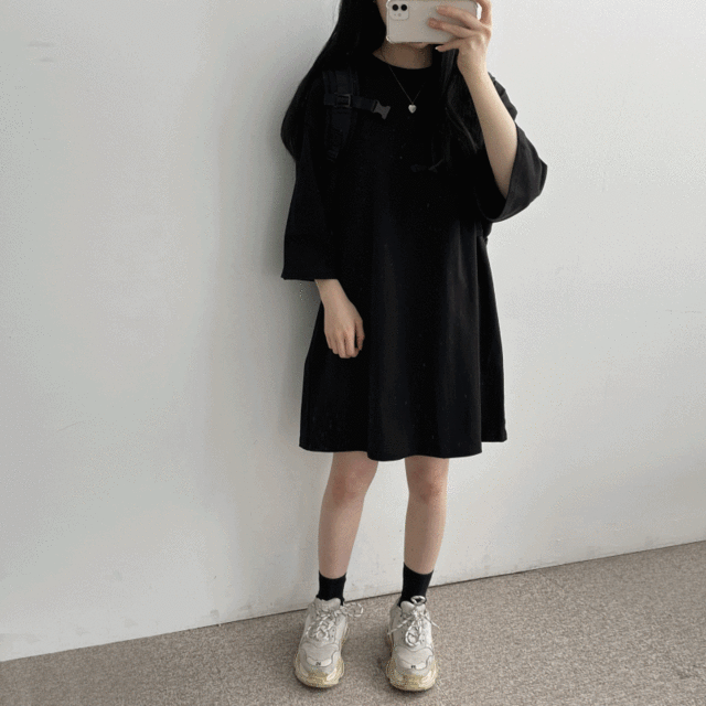 → 여름 휴가에 가장 잘 어울리는 스타일 🌴 - 코튼 티 원피스 + 스니커즈