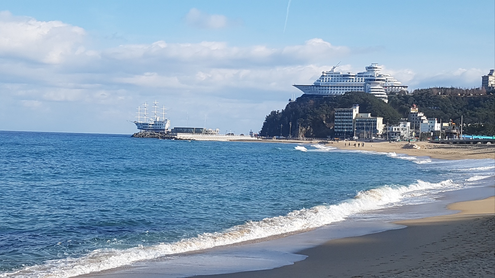 모래시계로 유명한 정동진에 위치하며 유람선 모양의 호텔입니다.