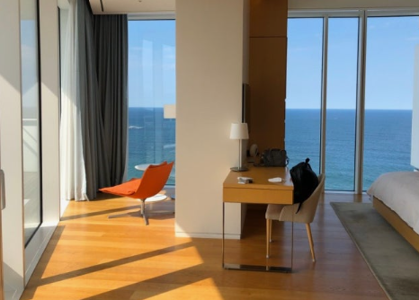 - 컨피네스 오션스위트 발코니: 객실 내에서 바다를 바라보며 여유로운 아침 식사 ☕
