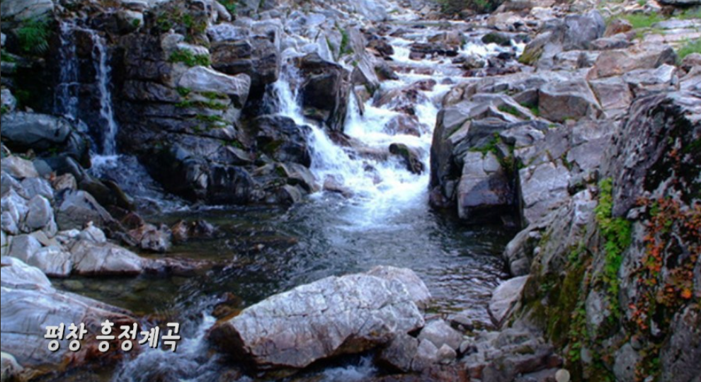 설명 : 흥정산(1,278.5m)과 회령봉(1,309m)에서 발원하여 평창군 봉평면의 흥정리·원길리·창동리·평촌리를 거쳐 용평면 백옥포리까지 이어지는 계곡으로, 사시사철 수량이 풍부하며 물이 맑고 깨끗하다.