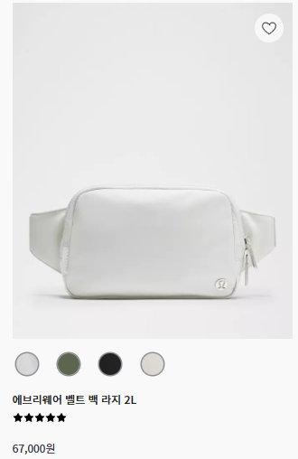 | 5 | Everywhere Belt Bag 1 L | 2018.02 | $38 | 약 51,300원 | 방수 원단 | 핸즈프리 한 방!🎒 데일리·러닝 |