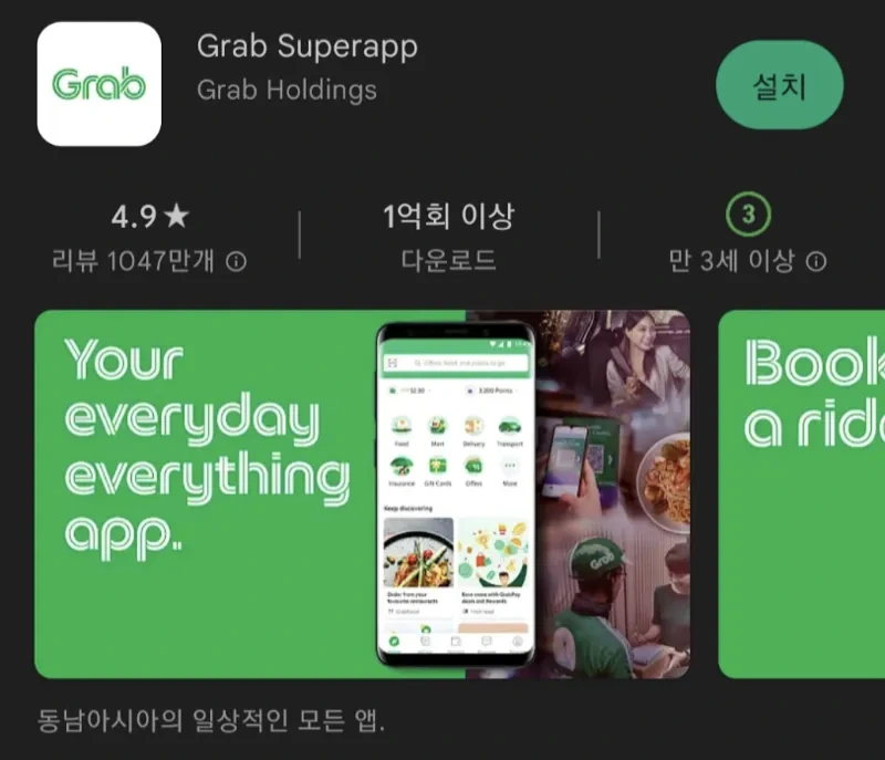 - 앱스토어(iOS) 또는 구글플레이(Android)에서 "Grab" 검색