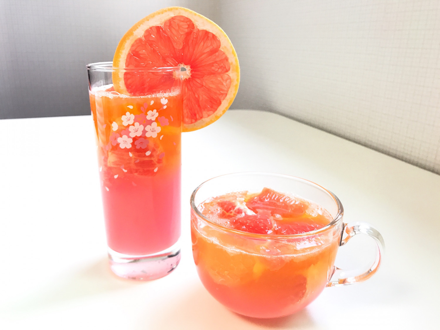 - 톡 쏘는 자몽의 상큼함, 약간의 쌉싸름함이 있어 자극적이고 시원한 과즙 맛.