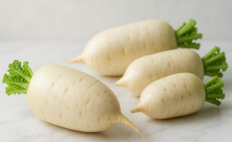 무즙과 파 고명을 곁들인 시각적 완성샷