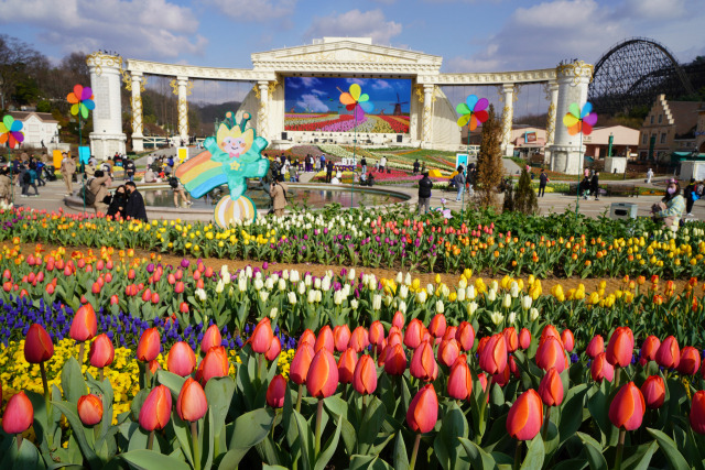 - 에버랜드 튤립축제의 화려한 꽃밭: 다양한 색상의 튤립이 가득한 에버랜드의 정원 풍경.
