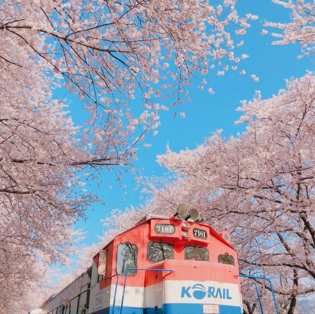 - 진해 군항제의 여좌천 벚꽃길: 벚꽃이 만개한 여좌천을 따라 걷는 사람들의 모습과 야경.