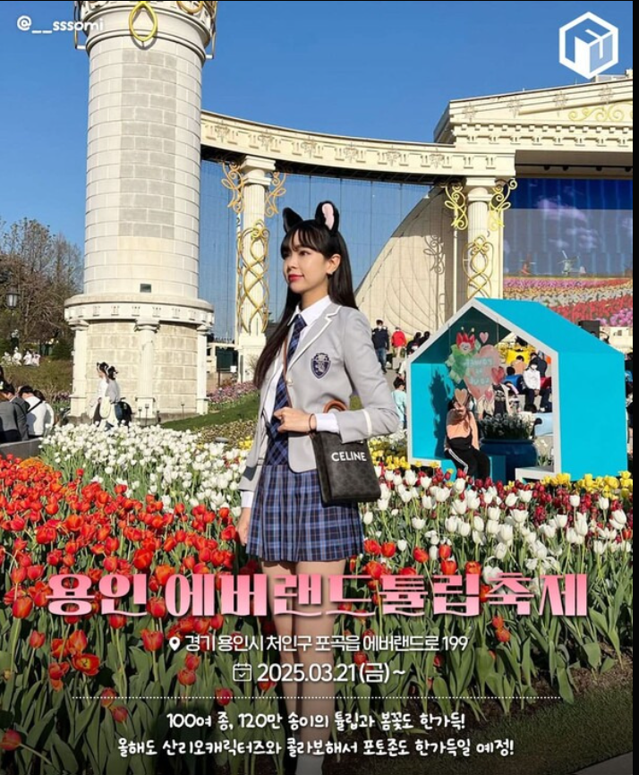 | 에버랜드 튤립축제 | 3월 21일(금) ~ 4월 15일(화) | 경기도 용인시 에버랜드 | 다양한 종류의 튤립과 퍼레이드, 포토존이 가득한 테마파크 축제. |
