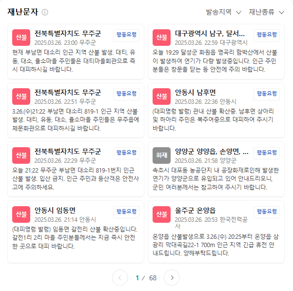 - 산불 대응 단계 발령: 의성군은 대응 2단계, 산청군은 3단계 발령.