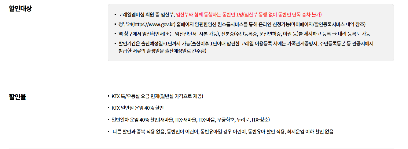 | 맘편한 KTX | 10~30% | 임산부 | 임산부 인증 필요 |